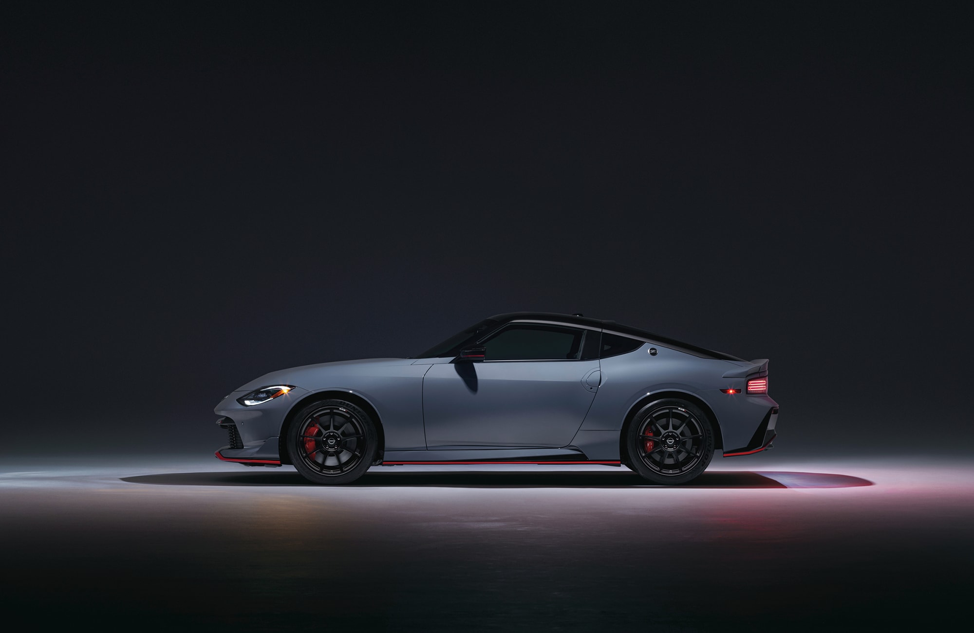 The Nissan Z models' exterior commands attention with its sleek, aerodynamic silhouette and bold styling cues. The long hood, short deck, and wide stance give it an aggressive, athletic presence on the road. The Sport trim comes standard with stylish 18" alloy wheels, while the Performance trim upgrades to lightweight 19" RAYS forged alloys for reduced weight. In Watertown, SD, the Nissan Z's LED headlights and signature LED daytime running lights will ensure you stand out day or night.